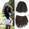 Kinky curly clip in hair extensions can be worn by individuals with straight, wavy, curly or naturally kinky curly hair. Just roller set or use a small barreled curling iron on your own hair to replicate the size of the curls of your clip in hair extensions and carefully integrate the clip in extensions into your hair to create more volume or get the curls you’ve always wanted.