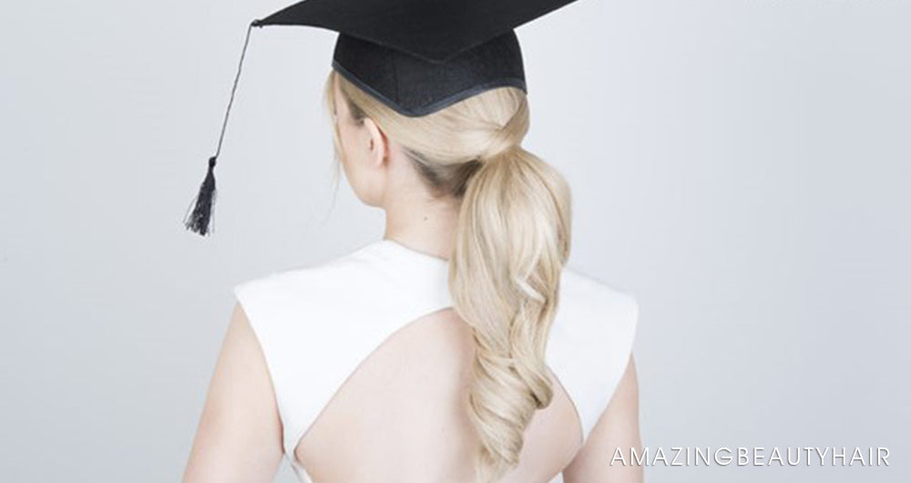 Starting from the sleek bun the second look that would be great for the graduation day is the low ponytail. Just like the previous look I would suggest halo hair, do exactly the same and brush carefully all of your hair towards the back. For this look I would personally choose to wear the longest hair extensions I can find, a solid 22 inches long would be perfect, and if you’re looking for something bold try out some highlights as well, they will give that unexpected twist that will leave everyone speechless. The final look would be gorgeous, a long, silky and vibrant ponytail.