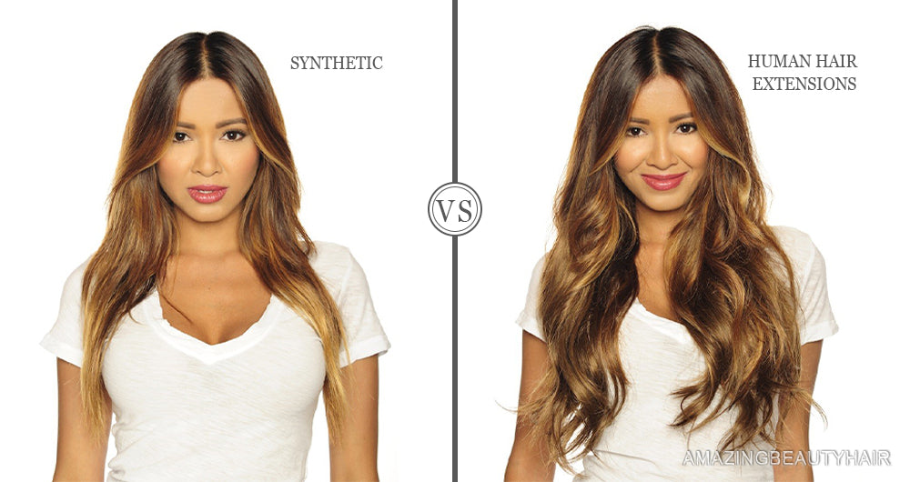 First of all, we want to make it clear the major differences between synthetic and human hair extensions. Just as they sound, synthetic hair extensions are made from a variety of artificial materials, including plastic. They may cost much less than human hair extensions, but cannot be colored or styled with hot tools.