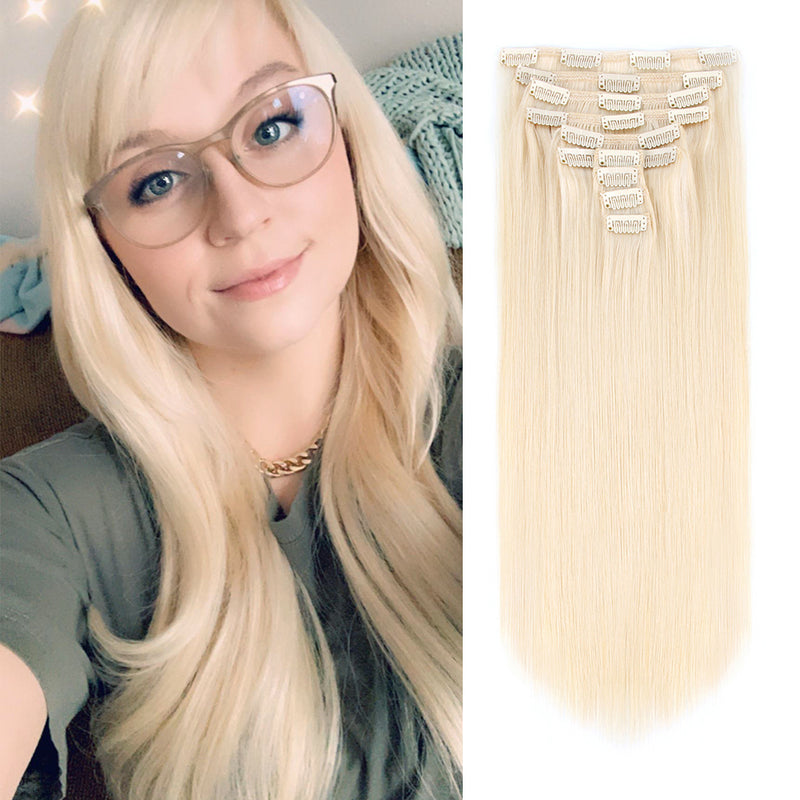 AmazingBeauty 220g Hair Extensions In Ash Platinum Blonde Color for Full Head, Long Clip in Hair Extensions. Our 220g Clip In Hair Extensions Instantly Transform Your Hair Into Longer, Thicker Hair With Added Volume And New Colour. Best Solution For An Embarrassing Moment - Fast Repair For a Bad Cut Hair. Improved Self-Esteem And Self-Confidence.