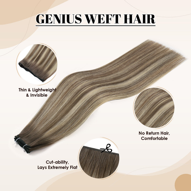 Amazing Beauty Genius Weftare made with 100% premium Double Drawn Virgin Hair. They are the newest and thinnest cuttable weft on the market. They have an incredibly thin and light ensuring unmatched discreetness and a natural look. Unlike traditional hand-tied extensions, our genius wefts are more durable, comfortable, thinner, seamless and maintain top-notch quality.