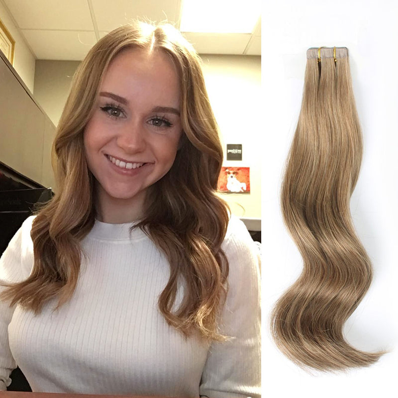AmazingBeauty Ash Brown Remy Tape In Hair Extensions 2.5g/pc , Professional Hair Extensions Are Made With Real Human Hair Without Any Animal Or Fiber Mixed.