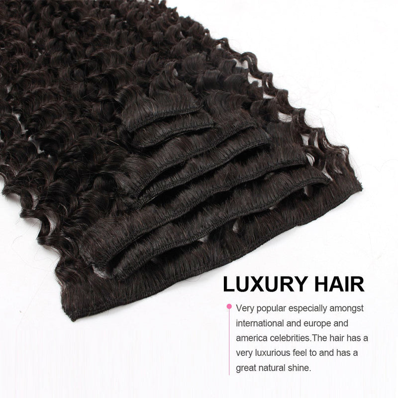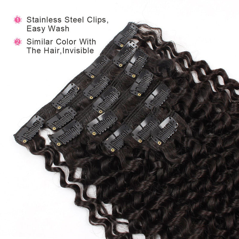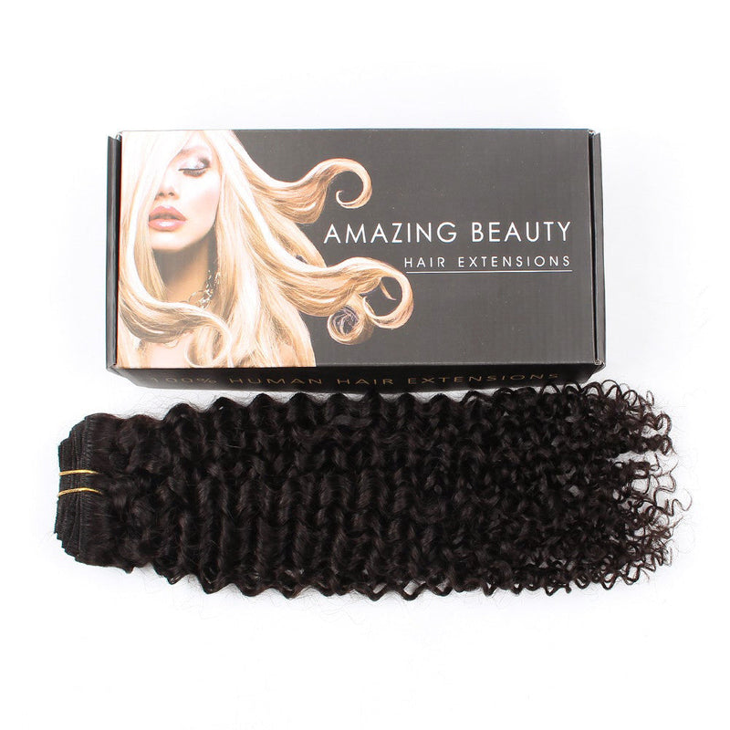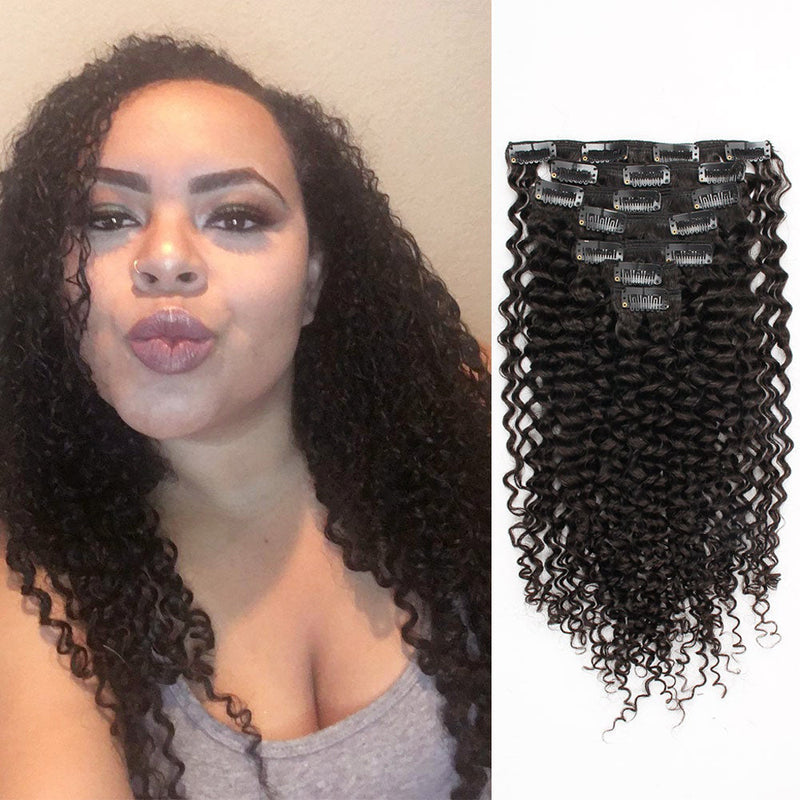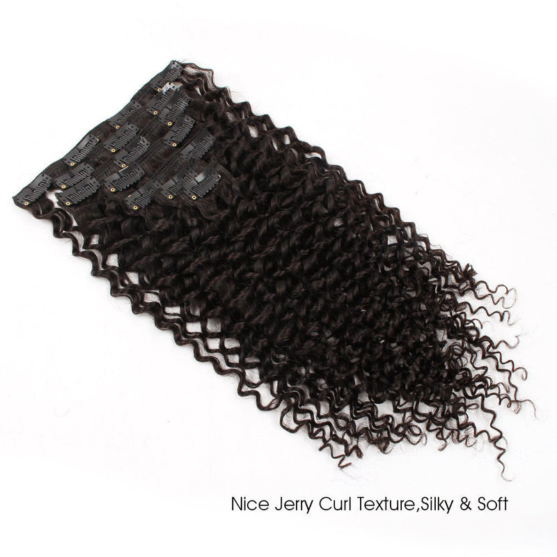 AmazingBeauty 3B Jerry Curl Clip In Hair Extensions, 100% Remy Hair Natural Black Curly Hair Extensions. The Jerry Curly Is Looser Than Kinky Curly Texture. It Is Suitable for 3B 3C Natural Hair.