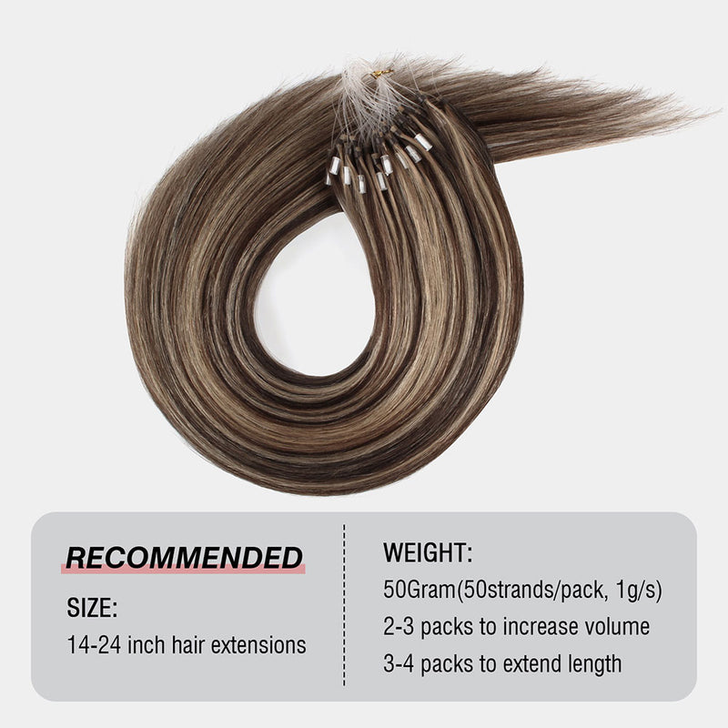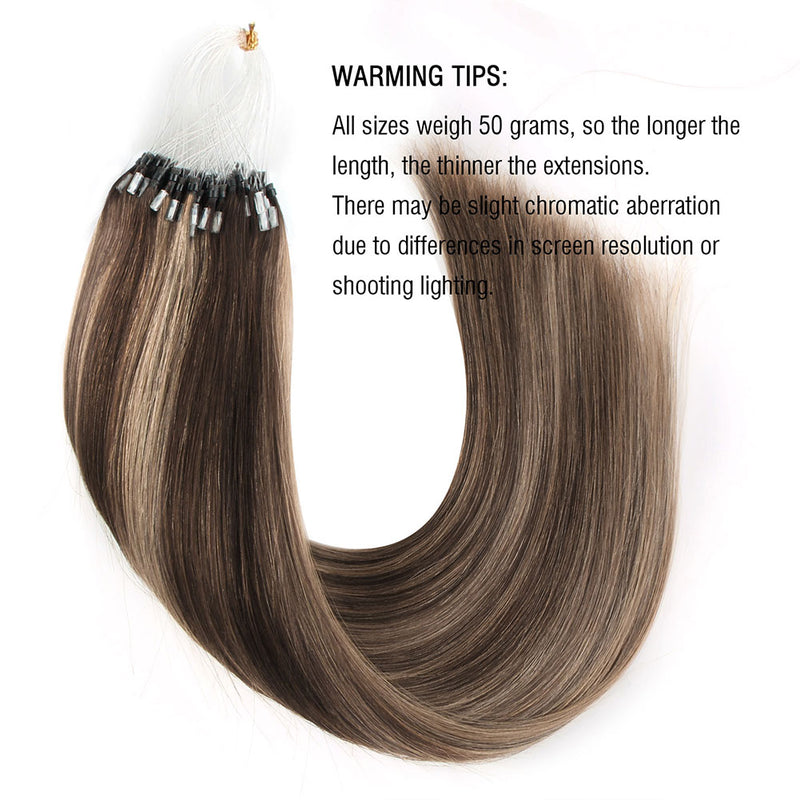 AmazingBeauty Micro Loop Ring Hair Extensions Are The Perfect Way To Add Volume & Length For Women. They are One of the Safest Hair Extensions Technique. Micro Rings Don't Involve Any Glue, Tape, Heat or Chemicals. No Damage to Your Hair! Whether Your Goal is to Add Length, Volume or Just for Fun. This New Attachement System is Revolutionary to the Hair Extension Industry.