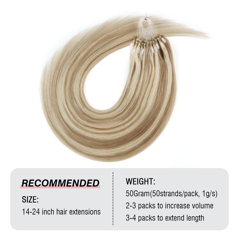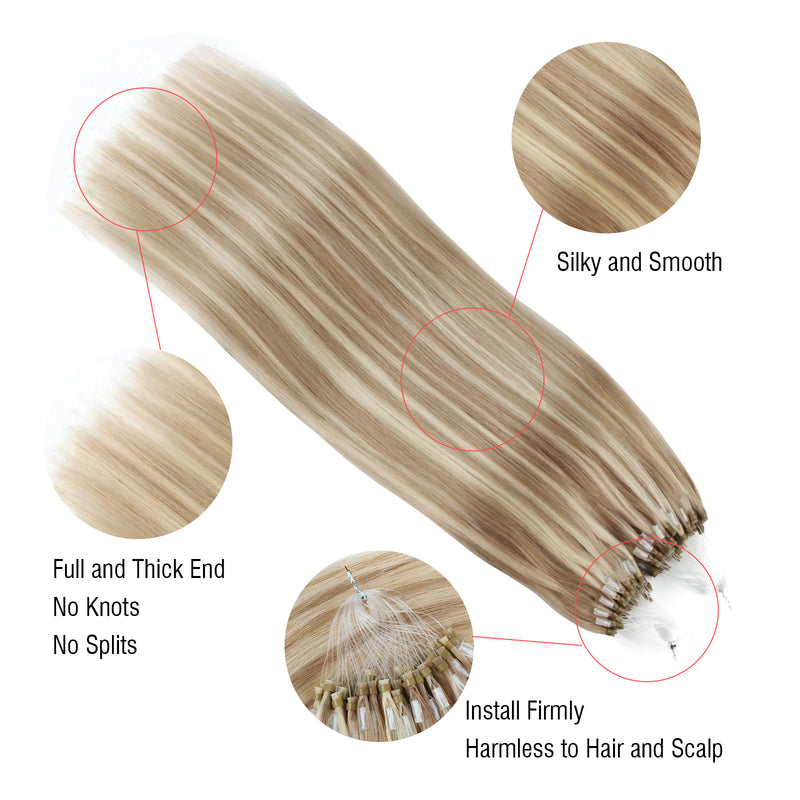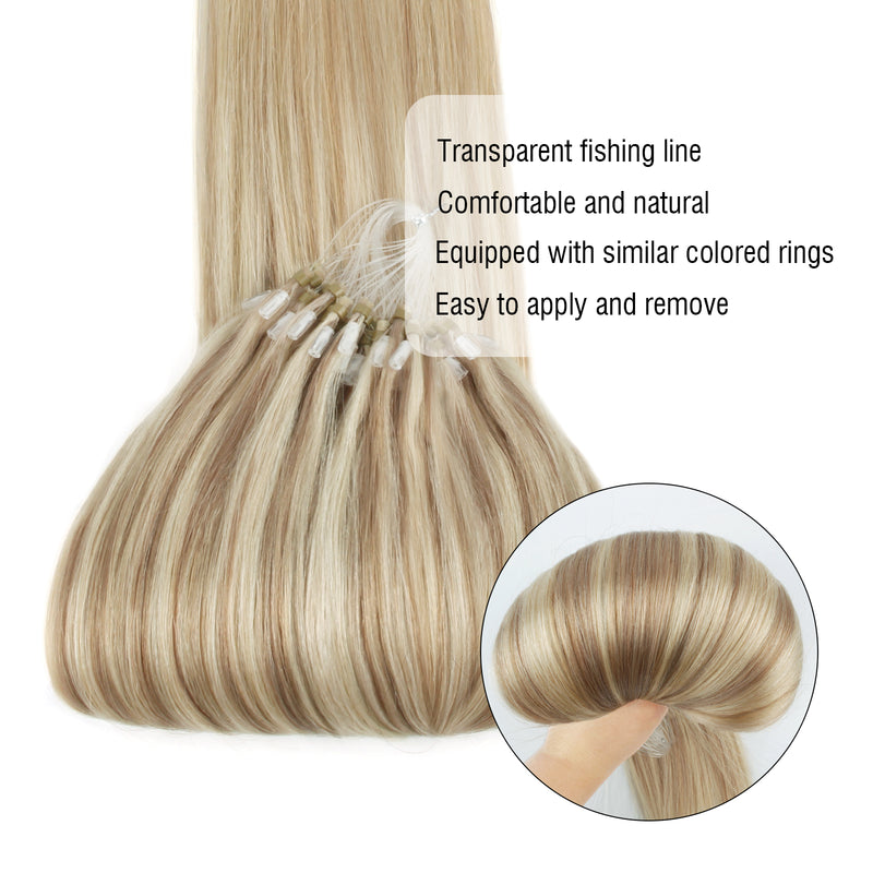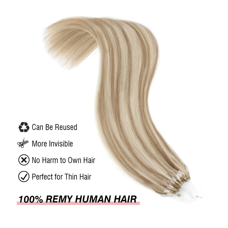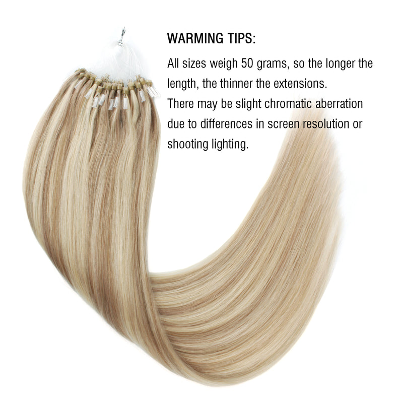AmazingBeauty Micro Loop Ring Hair Extensions Are The Perfect Way To Add Volume & Length For Women. They are One of the Safest Hair Extensions Technique. Micro Rings Don't Involve Any Glue, Tape, Heat or Chemicals. No Damage to Your Hair! Whether Your Goal is to Add Length, Volume or Just for Fun. This New Attachement System is Revolutionary to the Hair Extension Industry.