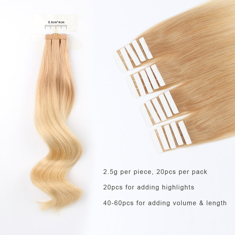 Tape In Hair Extension T #12/#60 Golden Brown Ombre Ash Blonde