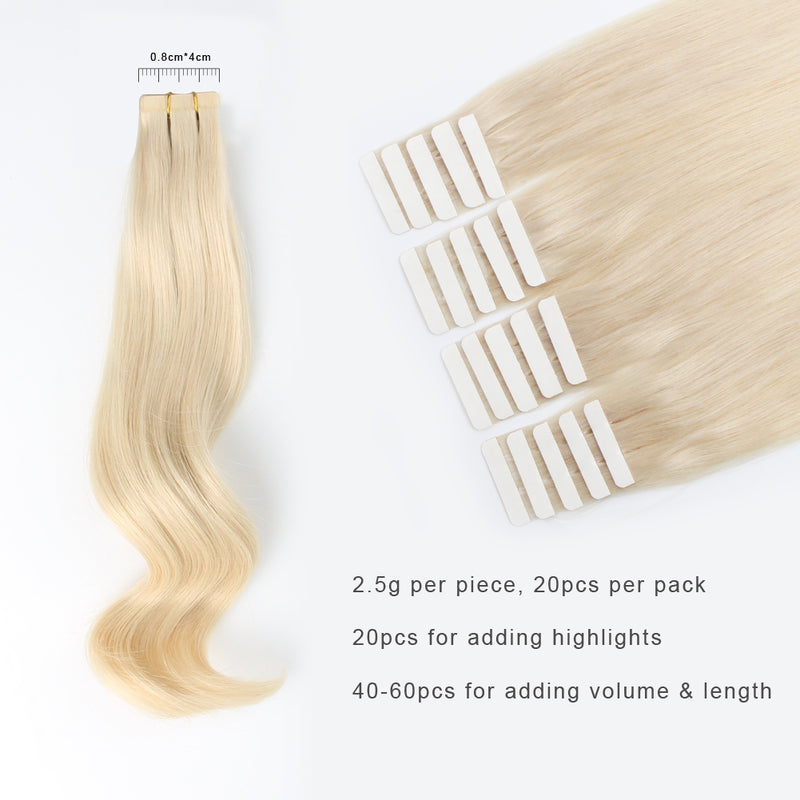 Easy to use: AmazingBeauty Tape In Hair Extensions are pre-taped and ready to install,installation is fast and can be done within 40 minutes.